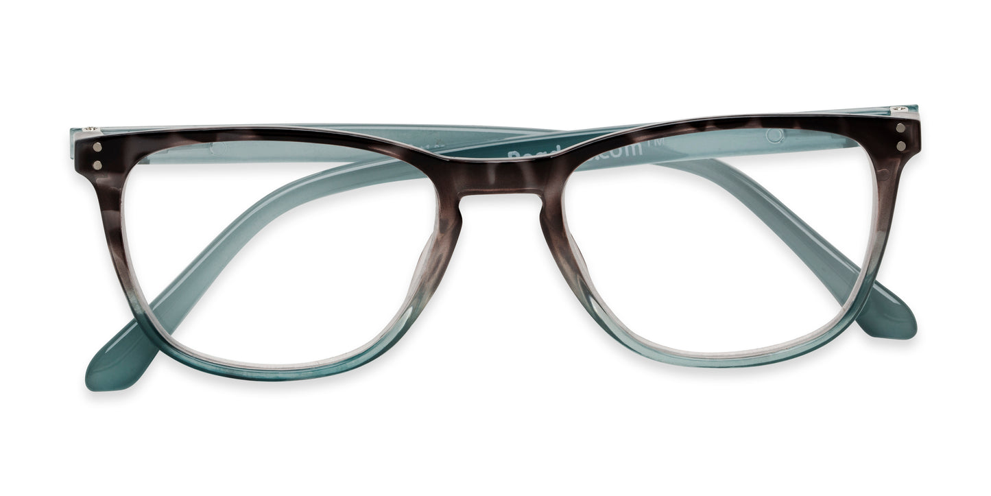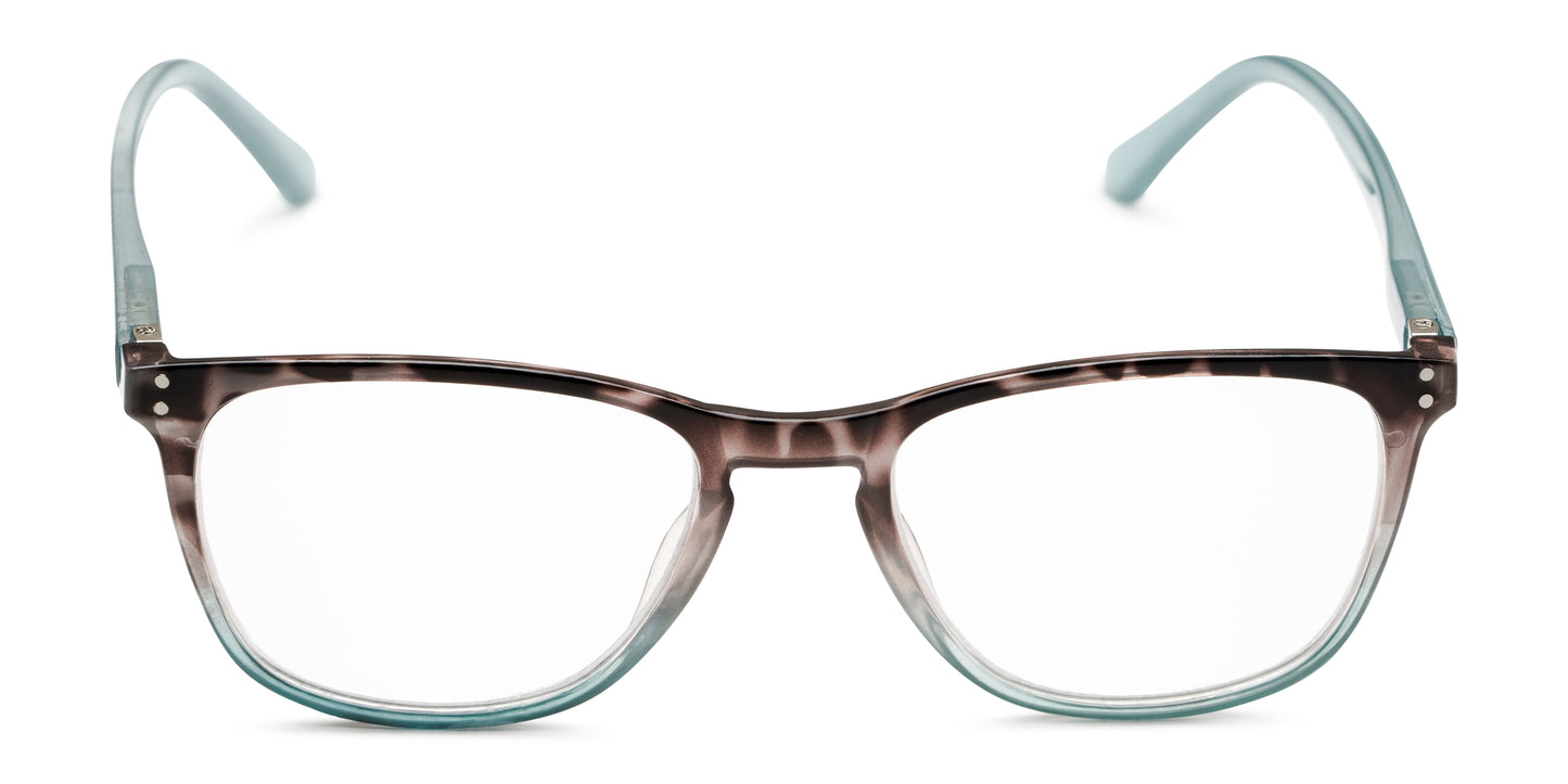 The Brandy is a lightweight, retro square reader that has spring hinges for a comfortable fit and a pretty two-tone color fade pattern.