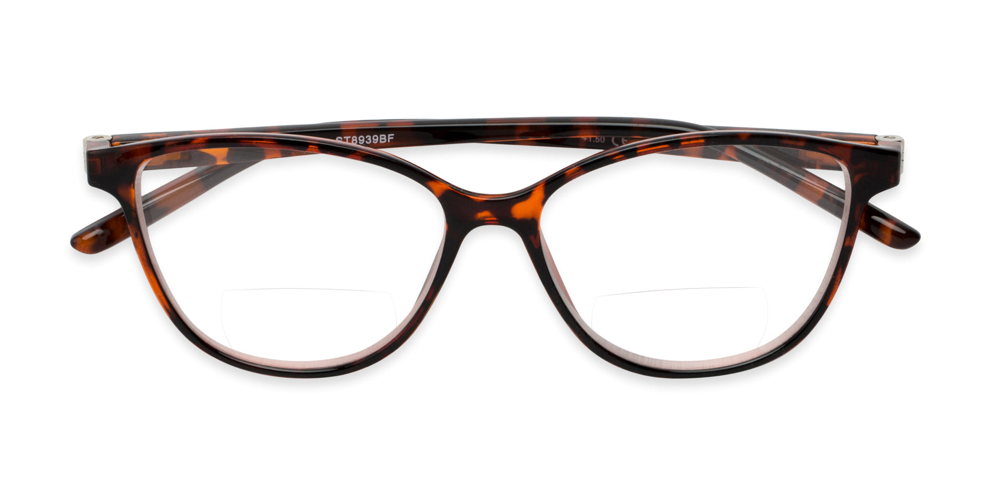 Refine your look with The Lenora Bifocal. These sleek cat eyes feature spring hinge temples and lenses with inner bifocal style inserts with the magnification of your choosing.