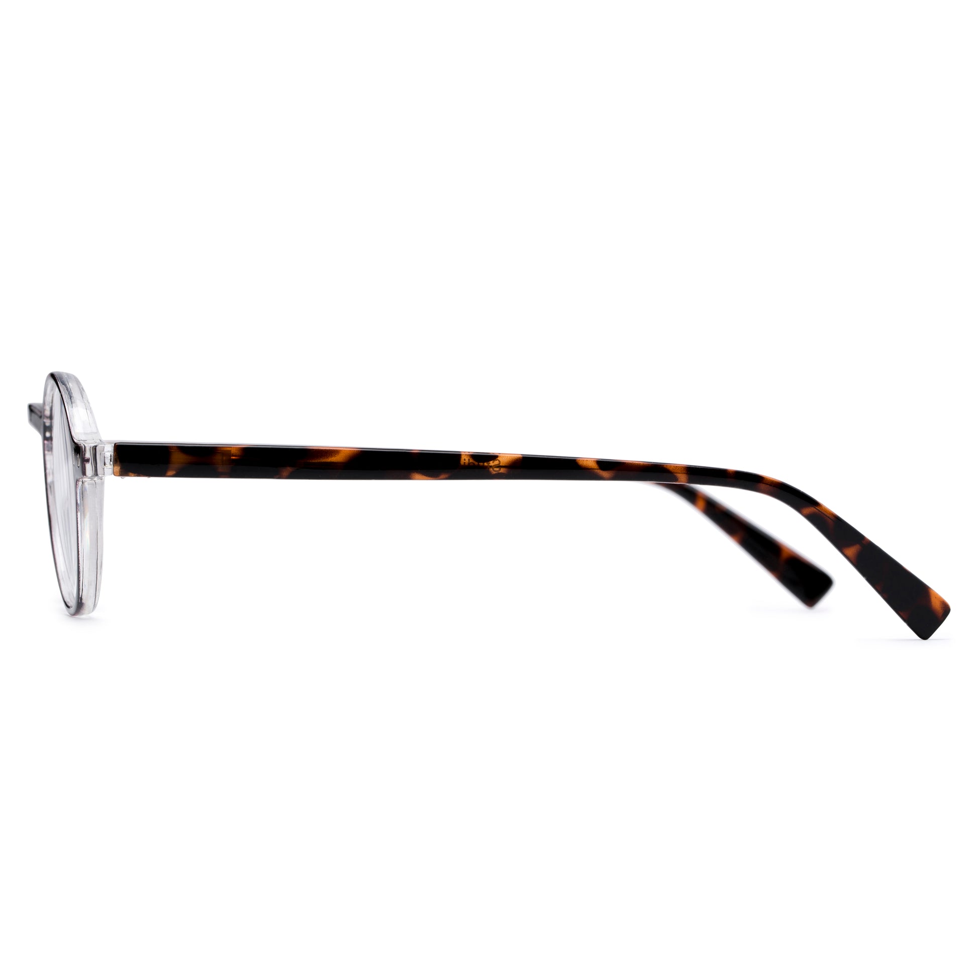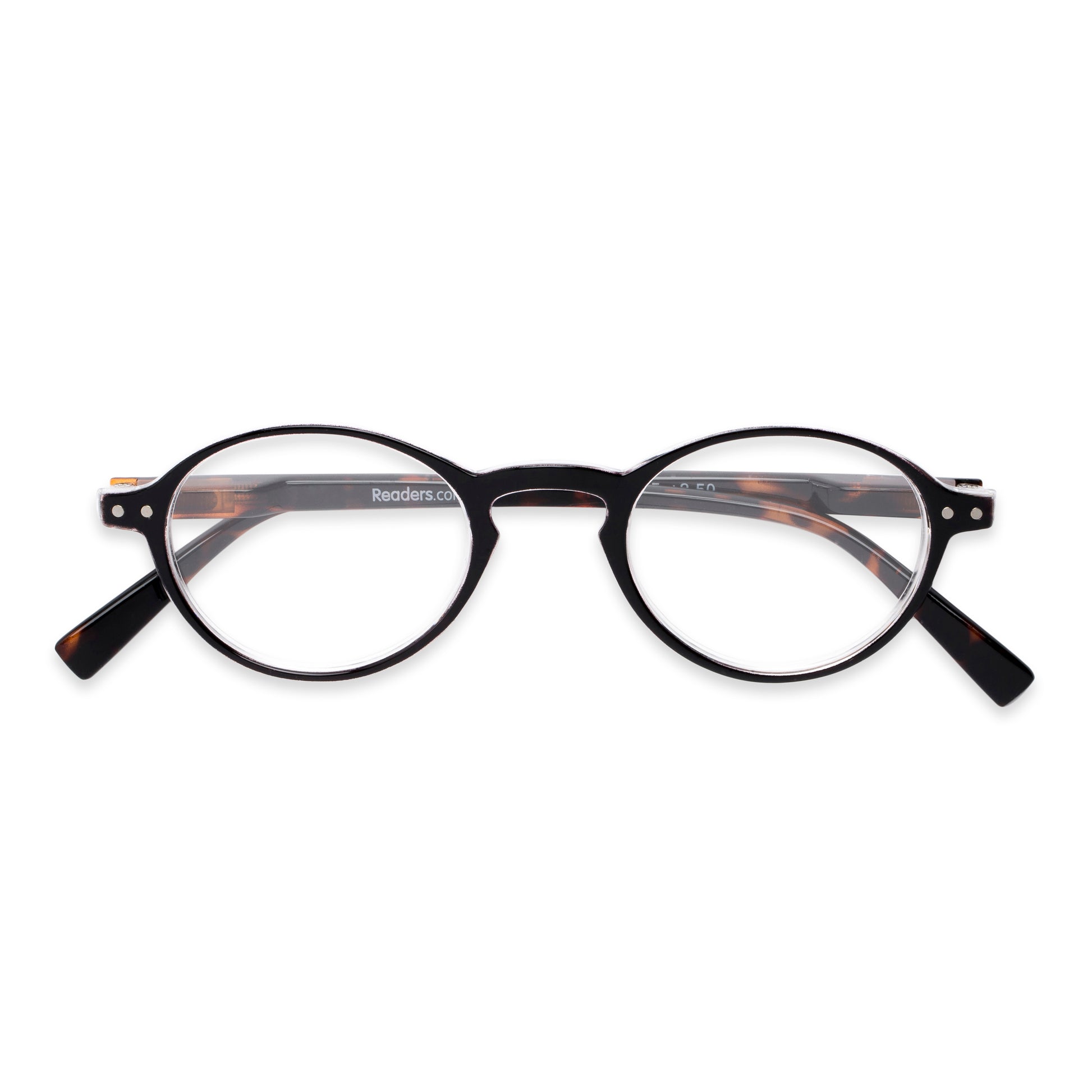 These full-framed reading glasses have a rounded, retro frame with small metal accents.