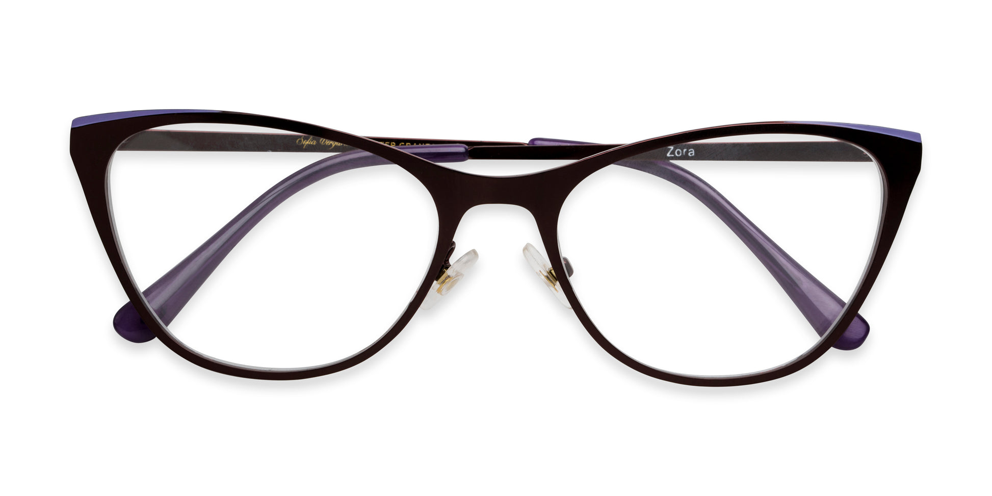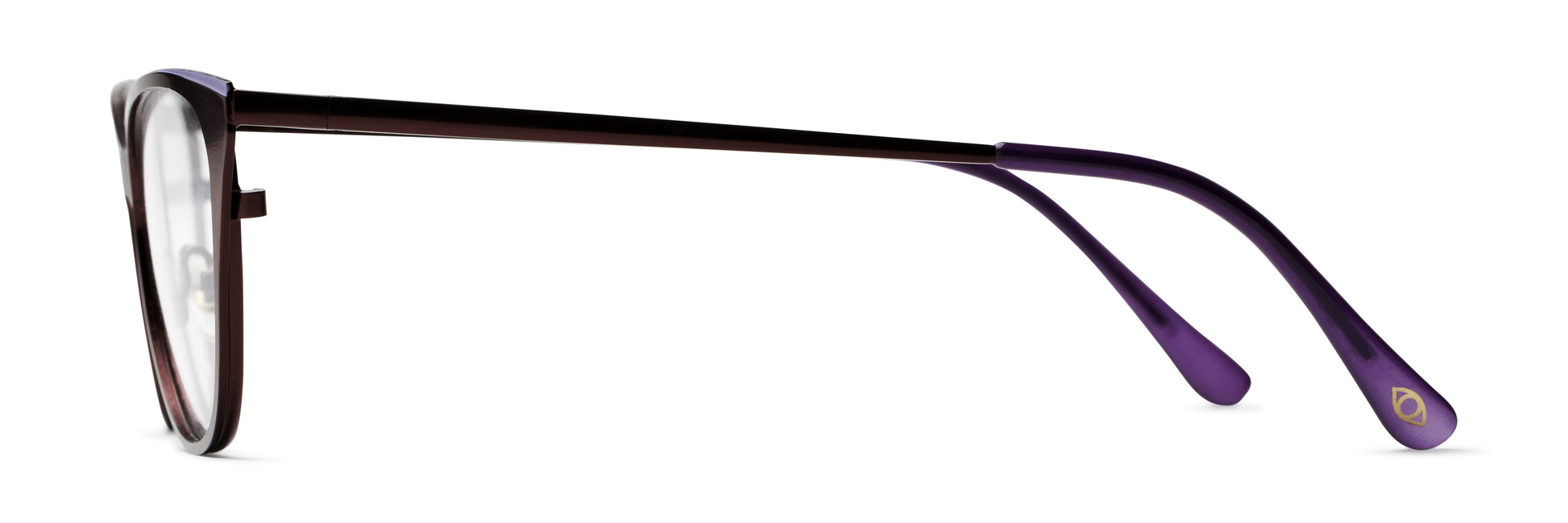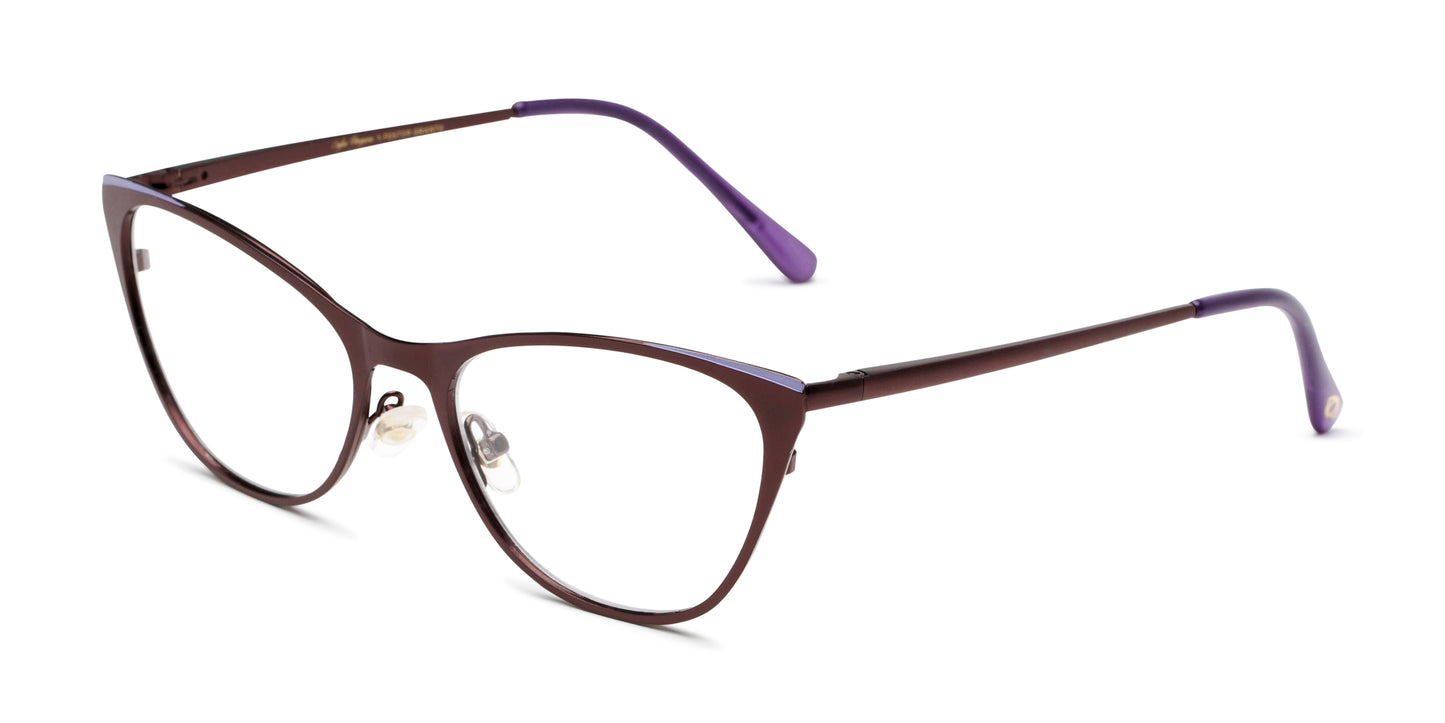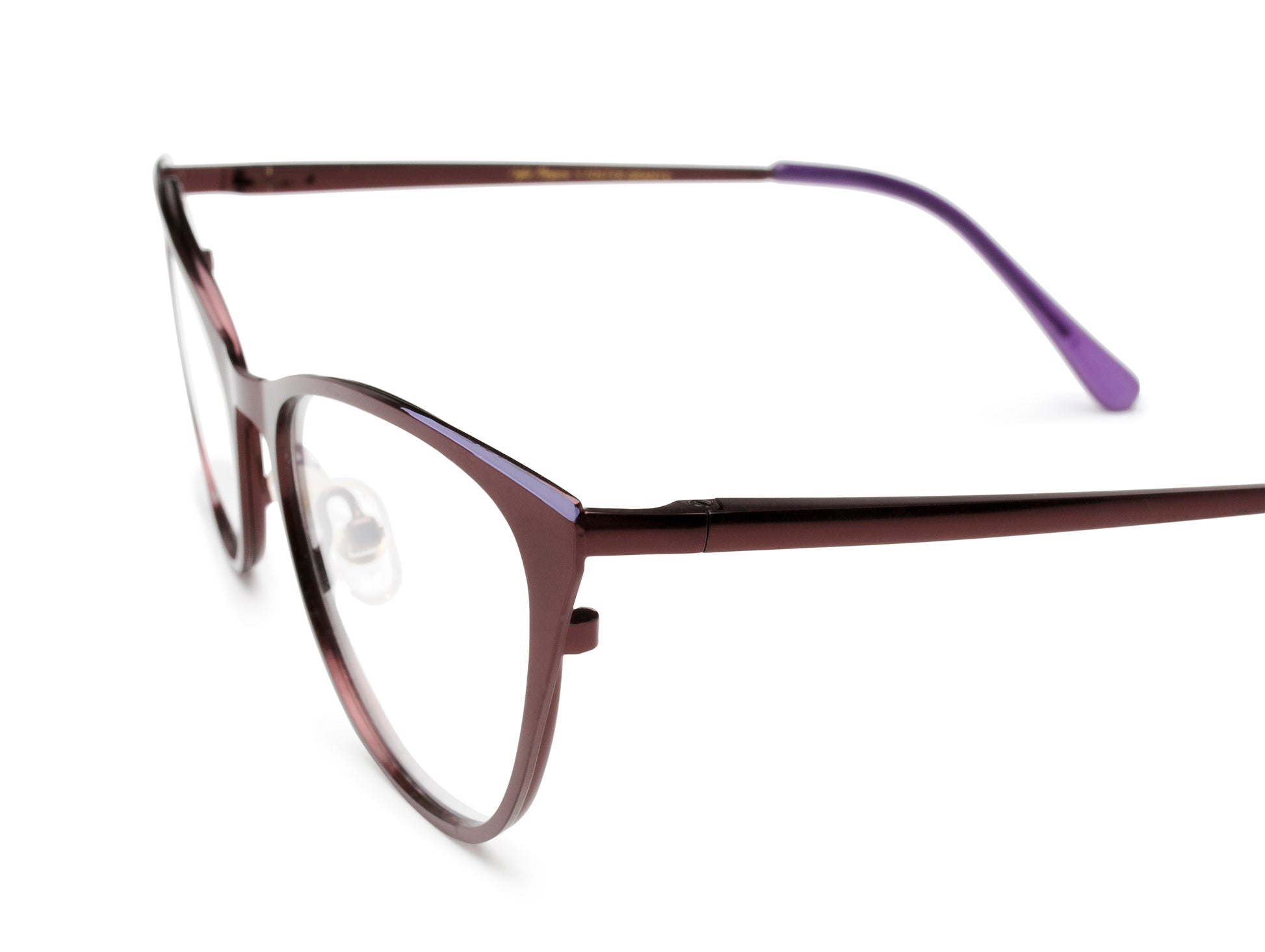 The Victoria is a brushed metal cat eye frame with a trendy contrast detailing on the brow, spring hinges, and adjustable nose pads.